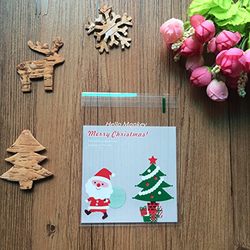 JOYEUX 300pcs Sacchetti Plastica,Sacchettini Trasparenti Alimentari con Striscia Adesiva per Pacchetti di Caramelle/Biscotto Gioielli,etc (Stile di Natale) 10 * 13cm