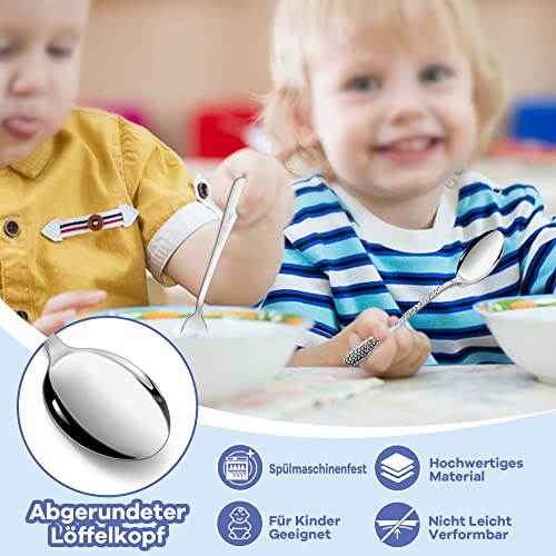 Joyfair Set di 6 cucchiai per bambini, in acciaio inox lucidato, set di cucchiai con manico a martello, posate per bambini, per casa, cucina/scuola, atossiche e sane, lavabili in lavastoviglie