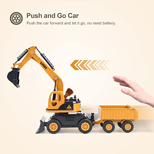 Joyfia Escavatore giocattolo camion, set di giocattoli con cartelli stradali (15 pezzi), veicolo di ingegneria all'aperto per sabbia, feste, favore, regalo di compleanno, 3-8 anni, bambini e ragazzi