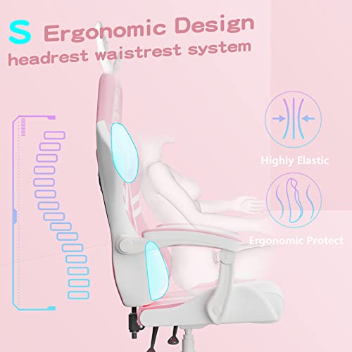 JOYFLY Sedia da gioco Kawaii, colore rosa, per computer, per ragazze, ergonomica, con schienale alto, regolabile in altezza, per donne e adulti (rosa)