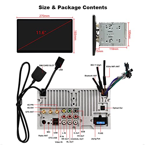 JOYFORWA Autoradio 2 DIN 11,6 pollici Car Radio 8G + 128G autoradio android 1920 * 1080 Touch Screen Stereo Auto con android auto/cralink/Bluetooth 5.1/USB/SWC/AV Input/FM Car Radio