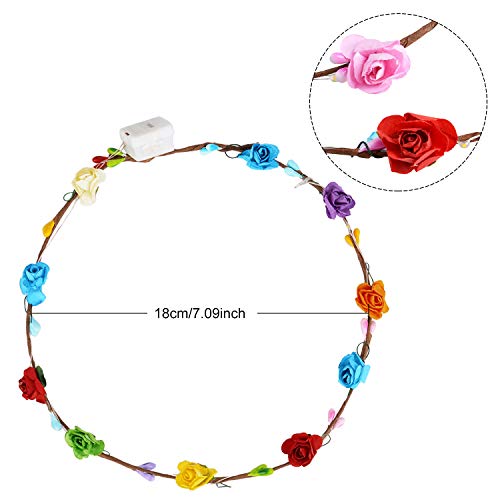 Joyibay Ghirlanda Fiori LED, 10 Pezzi Fascia Fiori Ghirlanda Corona Fiori per Ragazze Ghirlanda Floreale con 3 Diverse modalità LED, Copricapo per Festa di Nozze