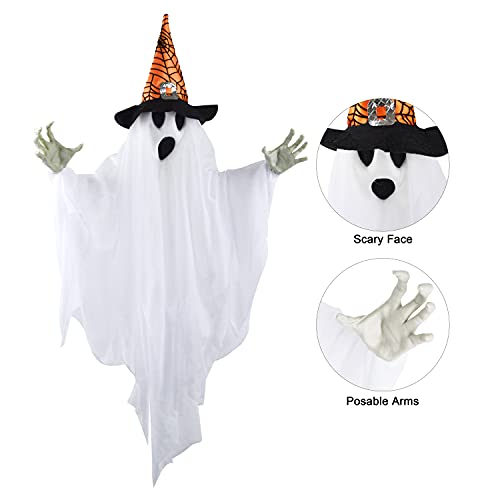 JOYIN Confezione da 3 decorazioni fantasma da appendere da 63 cm, fantasma bianco con cappelli per scena del cimitero di casa infestata, decorazione spettrale per interni ed esterni