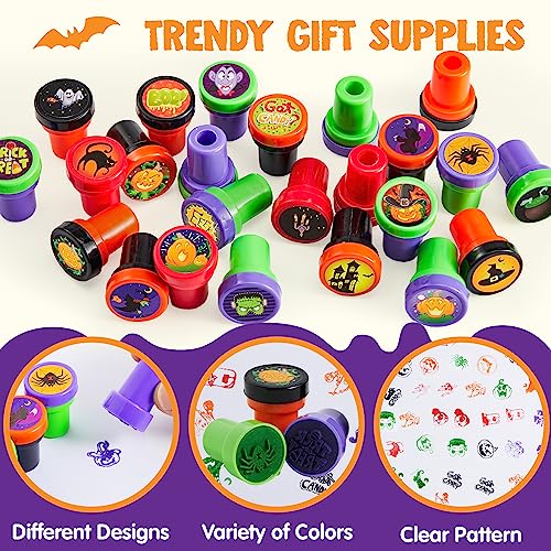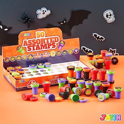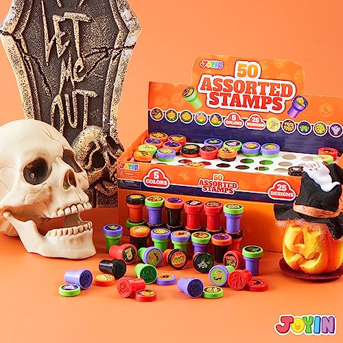 JOYIN 50 Pezzi Halloween Timbri e Stampini per Bambini Francobolli Self-Ink (25 Disegni, Francobolli in Plastica, Dolcetto o Scherzetto, Spettrali) per Riempitori di Sacchetti