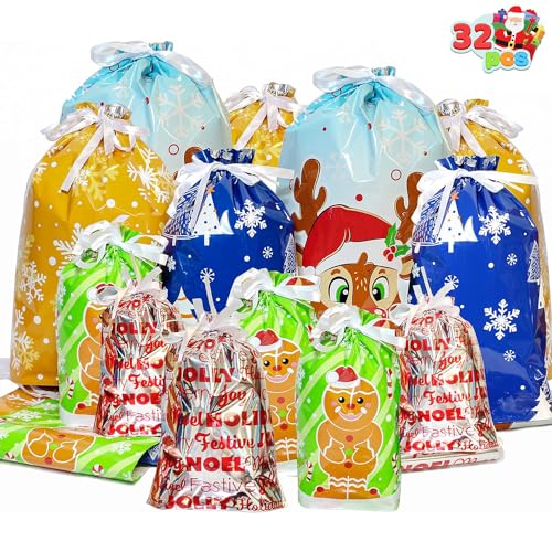 JOYIN Sacchetti regalo di natalizio 32 borse da regalo di natale, borse per regali per regali assortibili per Regali riutilizzabili