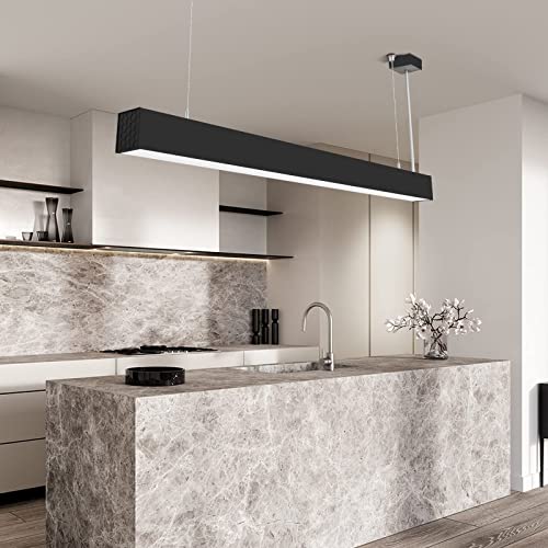JOYINLED 30W LED Lampade a sospensione Sala da pranzo Lampada da tavolo da pranzo Lampada a sospensione per ufficio Soggiorno 120CM Lampada da ufficio Lampada a sospensione a soffitto (Nero, 4000K)