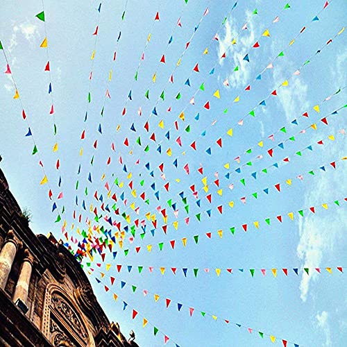 Il pacchetto include 200 pcs triangolo decorazione bandiere,La lunghezza totale è di circa 100m.Adatto a decorazioni da party interne ed esterne.