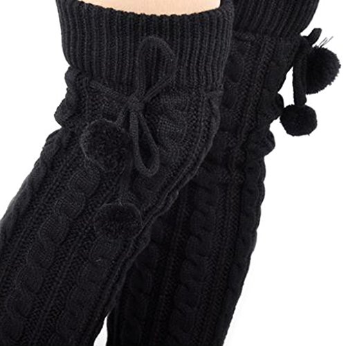 JOYKK Donna Scaldamuscoli Invernali Ginocchio Tacco Alto a Coscia Alta Lavorato a Maglia a Maniche Lunghe - Nero