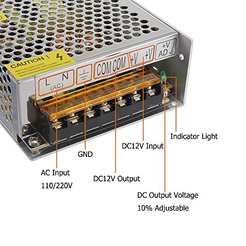 JOYLIT Alimentatore trasformatore 12V 10A Adattatore di alimentazione 120W per Striscia LED CCTV
