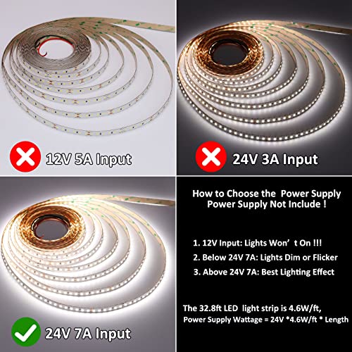 [ Garanzia di sicurezza ]: Striscia luminosa a LED a bassa tensione omologata CE UL 24V. Utilizzo senza preoccupazioni a casa, in ufficio, in ambito commerciale e industriale. Il calore è più elevato rispetto a quello normale, ma rimane comunque nella fascia di sicurezza. È possibile aggiungere un canale in alluminio per una migliore dispersione del calore.
