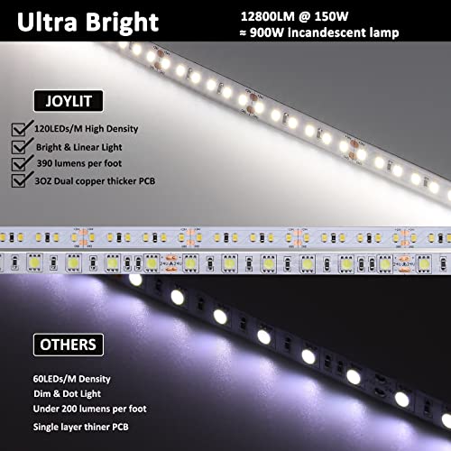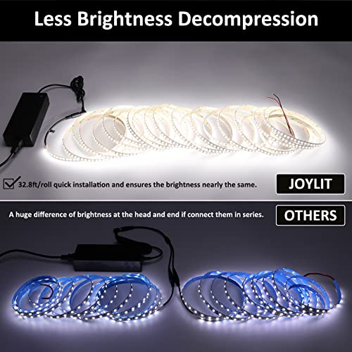 JOYLIT 24V Striscia LED 10M 5000K Bianca 12800LM Alta Luminosità CRI 92+, CE UL Professionale Dimmerabile Nastri LED 120LEDs/M SMD 2835 150W Flessibile Adesive Luce per Residenziale, Commerciale