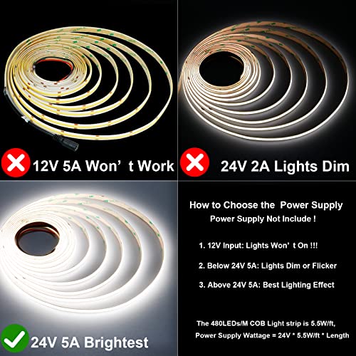 [ATTENZIONE]: Solo strisce luminose a LED COB da 24V. Avrai bisogno di un alimentatore da 24V 90W o una potenza superiore. Luci dimmerabili ma interruttore dimmer LED non incluso.