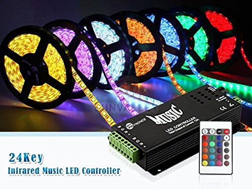 JOYLIT Suono attivato Musica LED Controller DC 12V 24V 144W RGB Telecomando IR24 Tasti sensore di suono remoto Per Luce Strisce LED RGB SMD 5050 3528