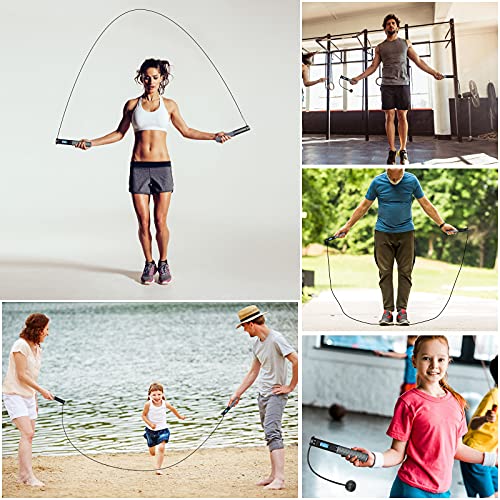 Joymeey Corda per Saltare Calorie Conta, Corda Salto Regolabile con Timer, Contatore Salti e Impugnatura in Memory Foam per Crossfit Boxe Fitness Allenamento a Casa Palestra corda,bambini e adulti