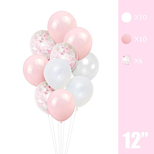 JOYMEMO Decorazioni Baby Shower per Ragazze Rosa e Bianco, Palloncini Baby Girl, Ghirlanda di Elefanti, Palloncini coriandoli, Topper Torta di Elefante per Baby Shower Forniture
