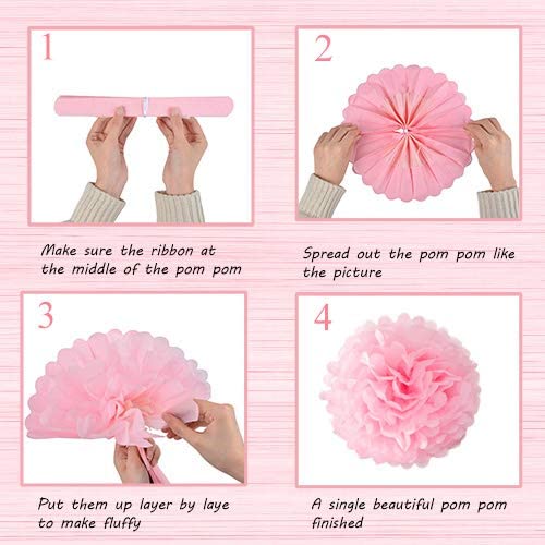 Come usare: Sono molto facili da decorare in baby shower party. Devi solo avere bisogno che il fiore di carta possa salire di livello per strato. È uno stendardo e una ghirlanda può appendere davanti al tavolo o al muro del regalo. Le sfere a nido d'ape e le lanterne devono essere appese al soffitto.