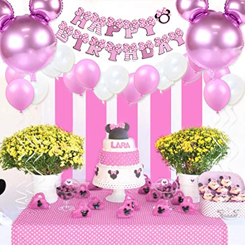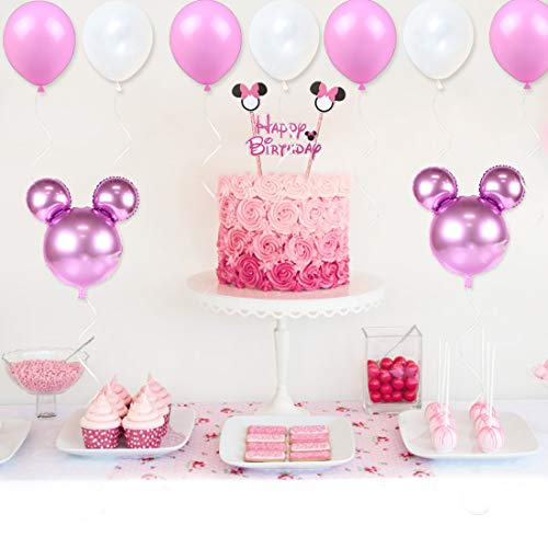 JOYMEMO Decorazioni di Compleanno Topo Cartone Animato per Bambine Forniture per Topo Cartone Animato Rosa con Palloncini Topo Cartone Animato, Happy Birthday Ghirlanda e Cake Topper