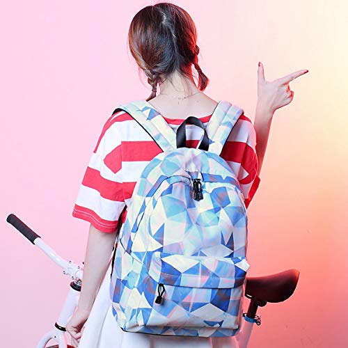 Joymoze Zaino per il tempo libero, zaino alla moda per ragazze, borsa stampata per adolescenti Blu e bianco