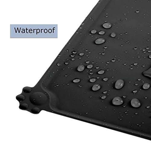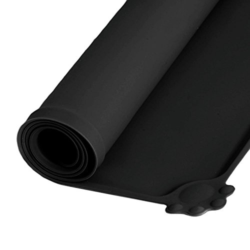 Joyoldelf Tappetino per Ciotola di Cibo Antiscivolo per Animali, con Disegni di Zampe, Perfetto per Proteggere Il Pavimento da Liquidi (Nero)