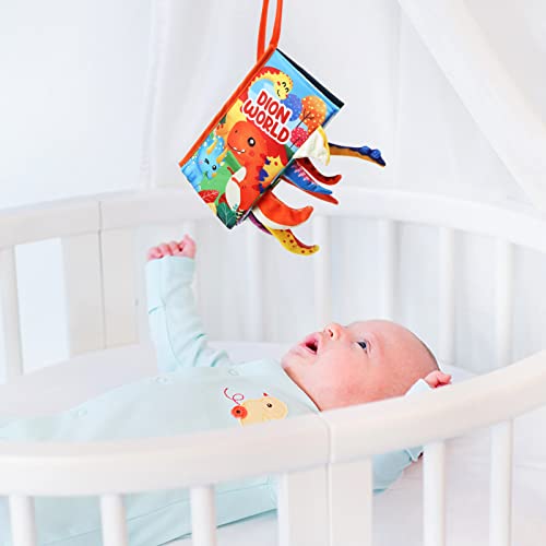 JoyPlus Giochi Neonato 0-12 Mesi, Giocattoli per Libri Sensoriali ad Alto Contrasto, Giochi Montessori Libro Tattile con Specchio, Giocattoli Libro di Stoffa per Neonati 0-12 Mesi(Mondo dei Dinosauri)