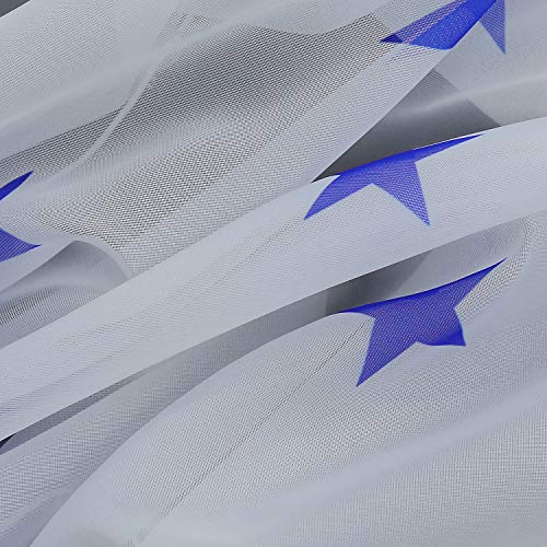 Joyswahl Tenda a pacchetto trasparente con occhielli con stampa a stella "Carolin", con ganci, senza forature, 80 x 140 cm, colore blu