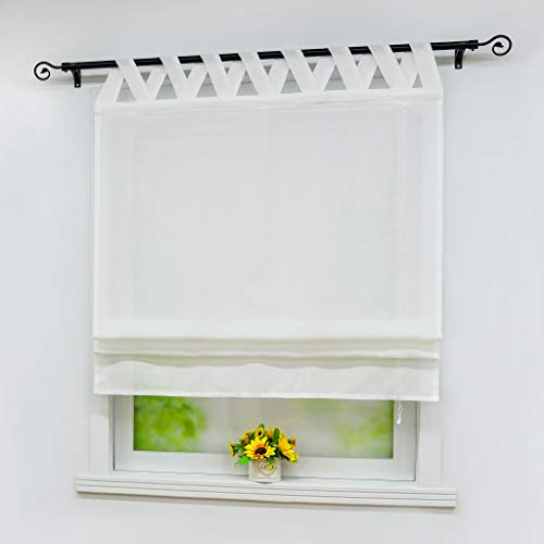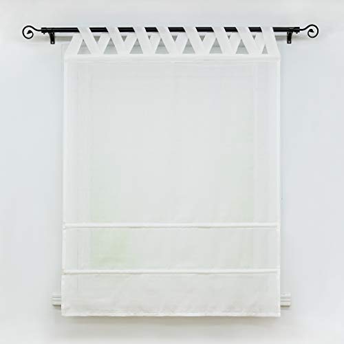 Joyswahl - Tenda a rullo semitrasparente, “Mila”, tinta unita, con passanti, per finestre, 1 pezzo, Poliestere, bianco, BxH 100x140cm
