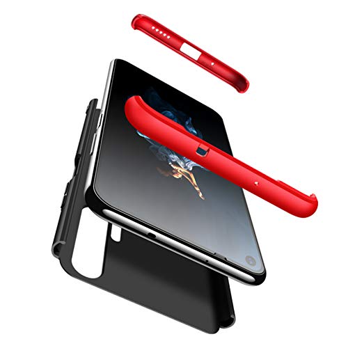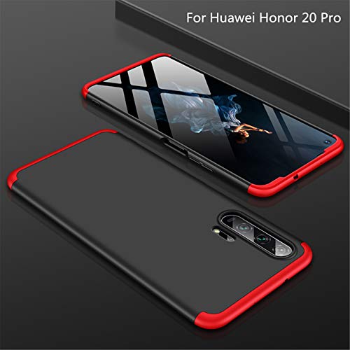 JOYTAG Cover Compatibile Honor 20 pro Custodia + vetro temperato 360 gradi Ultra sottile Tutto incluso Protezione 3 in 1 cover del telefono PC case-Rosso Nero