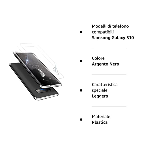 Joytag Cover compatibile con Samsung Galaxy S10 cover + pellicola protettiva per schermo [2 pezzi] 360° protezione completa 3 in 1- argento nero