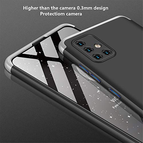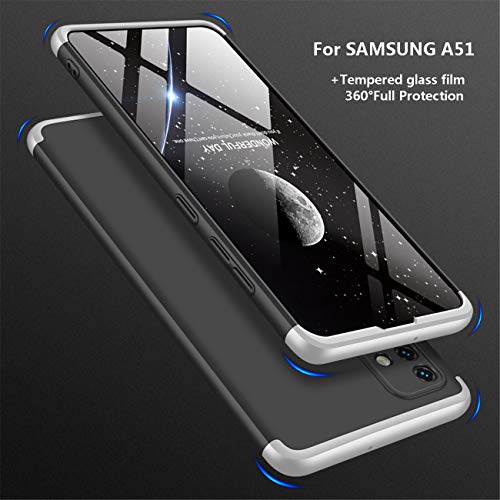 Joytag Cover compatibile per Samsung A51 + pellicola in vetro temperato a 360 gradi, tutto incluso 3 in 1 PC Bumper-Argento Nero