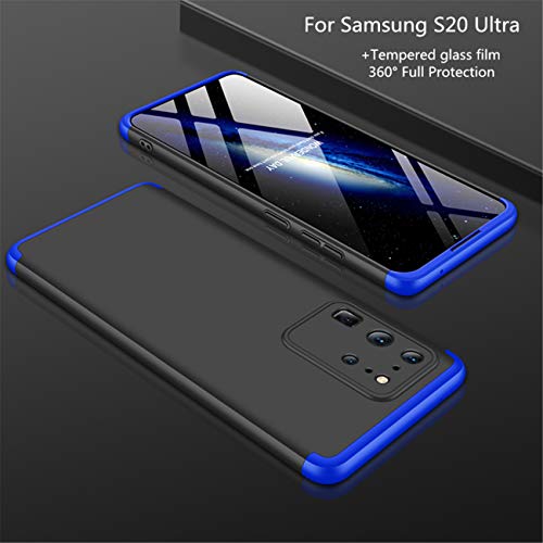 JOYTAG Cover Compatibile Samsung S20 Ultra, Custodia + Proteggi schermo[2 Packs] a 360°PC hard case-Blu Nero