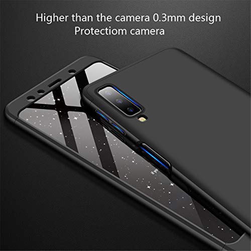 Joytag Cover per Samsung A7 2018 (A750) + pellicola in vetro temperato 360° protezione completa 3 in 1, nero