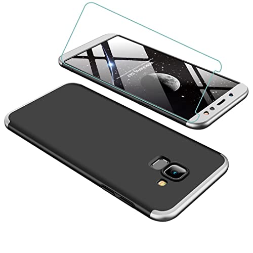 Joytag Cover per Samsung A6 2018 argento nero 360° protezione completa 3 in 1 + pellicola in vetro temperato, argento nero