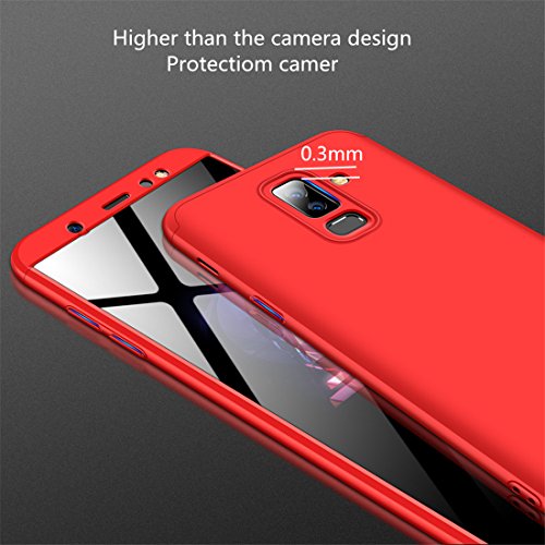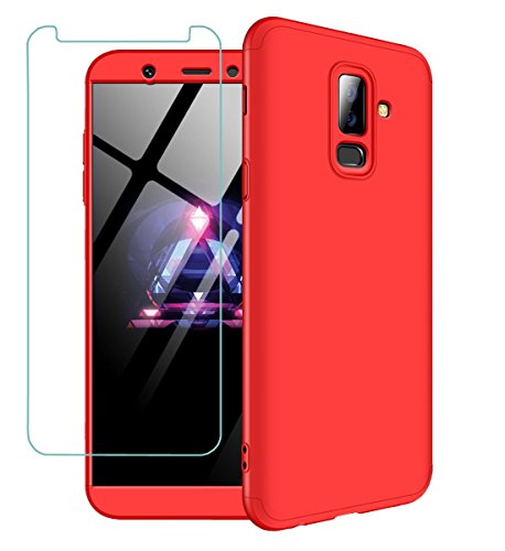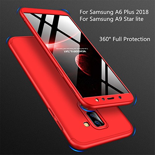 Joytag - Cover per Samsung A6 +/A6 Plus 2018, rosso, 360°, protezione completa 3 in 1+ pellicola in vetro temperato A9 Star Lite - rosso