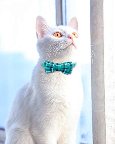 Joytale Natalizio Collare Gatto Regolabile, 1 Confezione, Collarino Gatto Antistrozzo con Campanellino e Papillon, Collare Plaid per Gattino e Alcuni Cuccioli, Teal