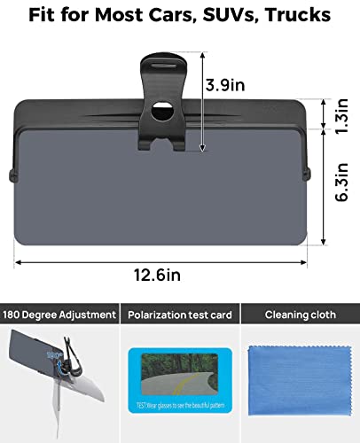 Installazione rapida: l'installazione rapida del parasole per parabrezza dell'auto richiede solo 5 secondi. Si adatta perfettamente alla visiera originale e assicura che la prolunga non si muova e non cada durante la guida. Si adatta alla maggior parte delle auto. Premere i distanziatori a spirale in plastica sul lato sinistro e destro e godere di una regolazione dell'angolo di 180 gradi della visiera polarizzata senza impronte digitali.
