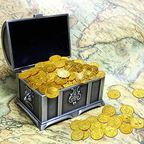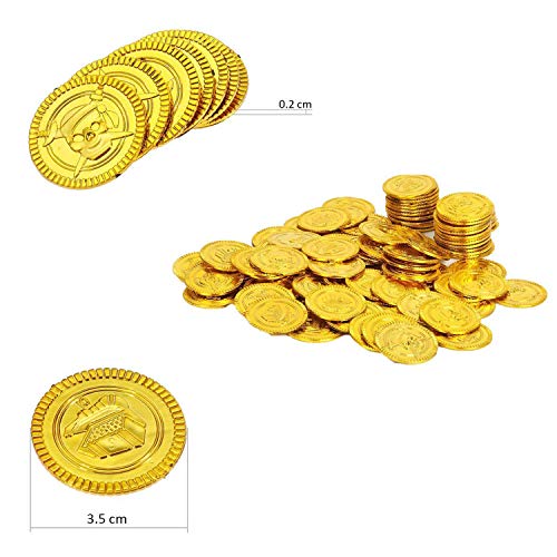 JOYUE 150 Pezzi Monete d'oro Pirata, Tesoro d'Oro per Party Pirata, Tesori per la Caccia al Tesoro Bambini Compleanno Decorazione Del Partito Regalo