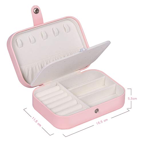 JOYUE Scatole Portagioie Gioielli, Portagioie da Viaggio da Donna 2 Strati Portable Gioielleria per Anelli Orecchini Collane Bracciali, 16,5 x 11,5 x 5,5 cm (Rosa)