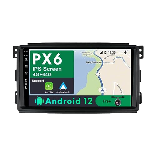 【PX6-CHIP, ANDROID 12, 4G + 64G 】 Sistema Android 12, Top-CPU: PX6 Rockchip 3399 - A72 HEXA Core - 64-Bit-Prozessor - 2,0 GHz. Con 【4G-RAM + 64G-ROM】- ti consentiranno di goderti la corsa più veloce e stabile e più APP installate rispetto ad altre autoradio standard sul mercato.▲ REGALO: Fotocamera posteriore.