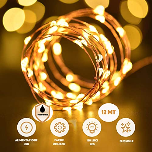 JP-LED Stringa Luci Led USB 【12M 120 Led 】 Catena Luminosa Impermeabile Filo Luminoso Portatile Per Decorazioni, Giardino,Interni,Esterni,Natale,Camera Da Letto,Matrimonio (12 MT 120 LED)