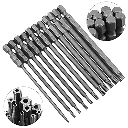 JPGhaha 11Pz Punte per Cacciavite Torx Lunghe 1/4 di Pollice Punte Torx Vuote Gambo Esagonale da T6 a T40 S2 Cacciavite Magnetico Portatile in Acciaio da 100 mm