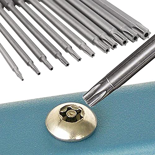 ⚙ Dettagli - 11 punte per cacciavite quinconce (T6, T7, T8, T9, T10, T15, T20, T25, T27, T30, T40). Lunghezza: 100 mm, forma della punta: Torx cavo. Dimensioni della testa del cacciavite: albero esagonale da 1/4 di pollice.