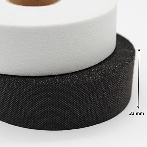 JPstraps - Nastro in tessuto termoadesivo interretella (100 metri x 33 mm) Fliselina Fusibile su un lato, striscia adesiva non tessuta per cucire, imbottiture, riparare tende, abiti (bianco)