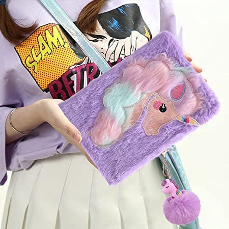 JPYH Cartone Animato Unicorno Taccuino Diario di Ragazze Carino, Blocco Note con soffice Copertina in soffice Peluche, diario di Viaggio Creativo per Studenti (Diario - Unicorno)