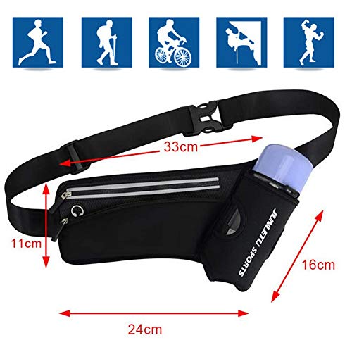 JPYH Marsupio da Corsa, Cintura con Porta Bottiglia d'Acqua, Marsupio Sportivo Cintura da Corsa Running Impermeabile con Cintura Regolabile(Nero)