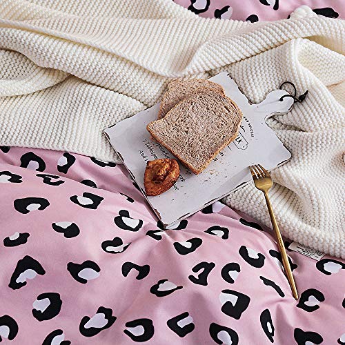 Jqwupup, Set di copripiumino leopardato per letto matrimoniale, 3 pezzi, morbido set di biancheria da letto per bambini, ragazzi, adulti, in microfibra leggera e resistente (matrimoniale, rosa)