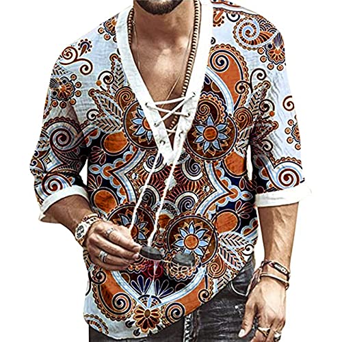 JQXX Camicetta a maniche lunghe con scollo a V slim casual da uomo primavera estate Camicia a maniche corte con bottoni stampati casual estivi da uomo