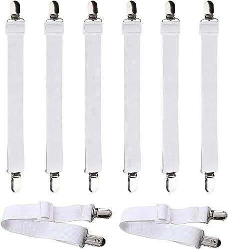 Jrancc Cinghia Clip Lenzuola 8 Pezzi Elastici per Lenzuola Regolabilecon Clip in Metallo per Biancheria da Letto