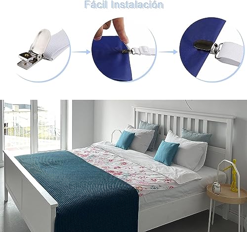 MULTIUSO: Le nostre clip per lenzuola possono essere utilizzate per fissare lenzuola piatte o incorporate e altri copripiumini come coprimaterassi. Possono essere utilizzati per contenere lenzuola, coprimaterassi, tovaglie, coperte ecc., piumoni, coperte, letti a misura e regolabili, letti con guanciali, memory foam, divani letto, ecc.