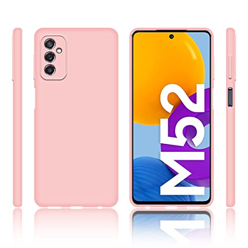 Jrester Cover per Samsung Galaxy M52 5G, Rosa Morbido Silicone Liquido Protettiva Custodia con Tre [9H Durezza] Vetro Temperato Pellicola Protettiva per Samsung Galaxy M52 5G 6.7"