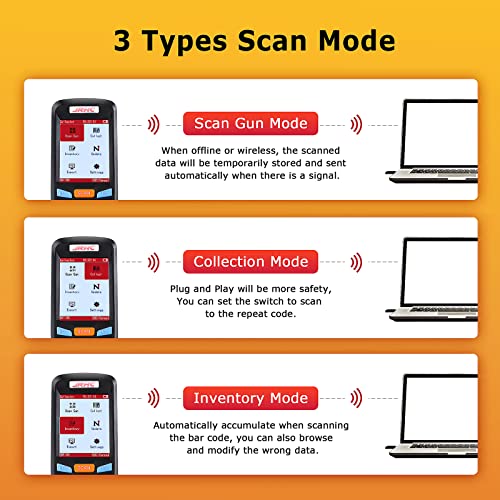 JRHC 2D Scanner e raccoglitore di codici a barre con ricevitore USB wireless da 2,4 GHz, schermo LCD multifunzione da 2,8 pollici, lettore di codici a barre con ampio raggio di trasmissione.